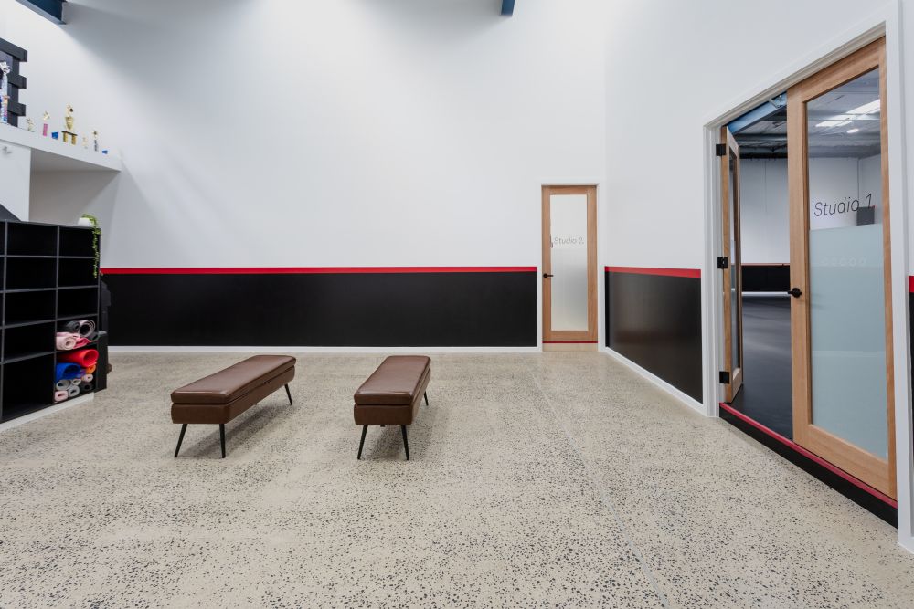 Our brand-new dance studio facilities have been thoughtfully designed to create an inspiring and comfortable environment for every dancer. Featuring three spacious studios, each equipped with high-quality sprung floors to support safe training and full-length mirrors to enhance technique, the space is built for both performance and development. Climate-controlled with both air conditioning and heating, the studio ensures year-round comfort, while a welcoming kitchen and dedicated dancer hangout areas provide the perfect spaces to relax and connect. With well-appointed dressing rooms and a large, open foyer that brings our community together, our new home is more than just a studio, it’s a place where dancers can thrive.